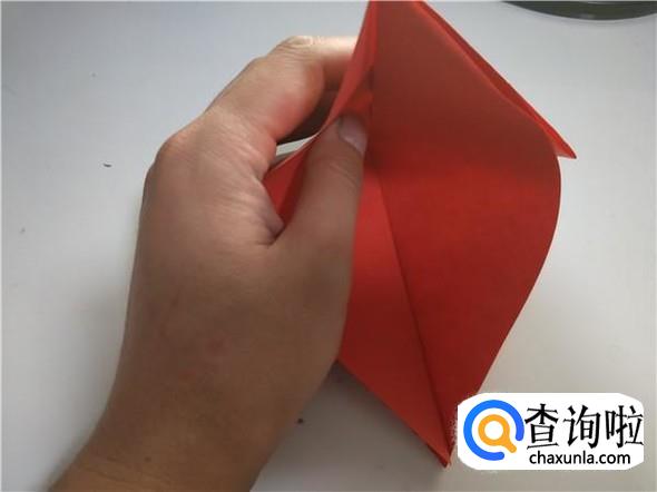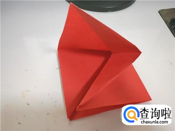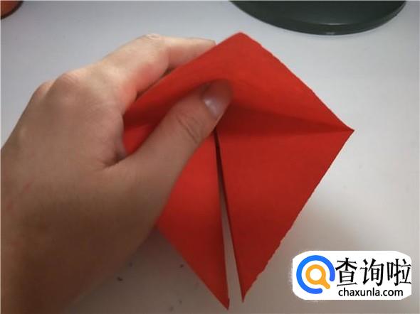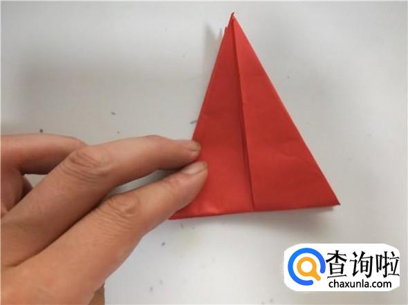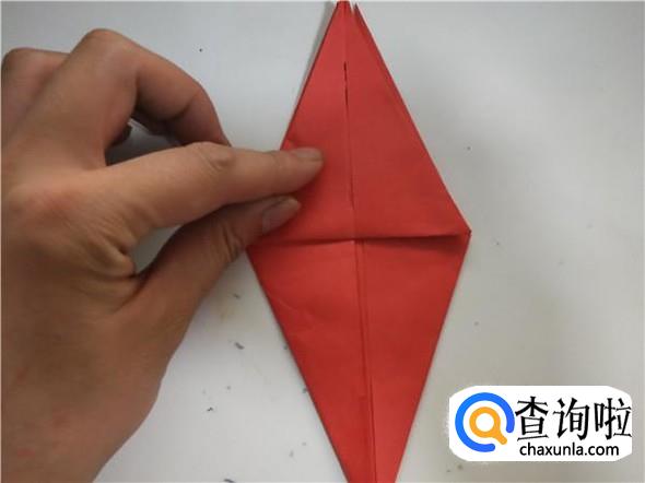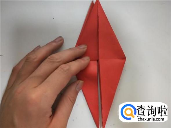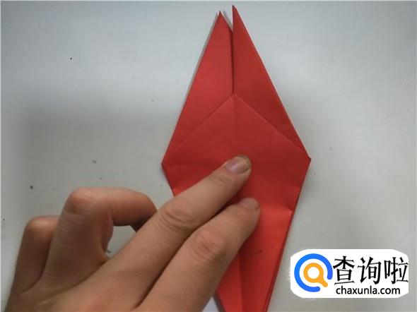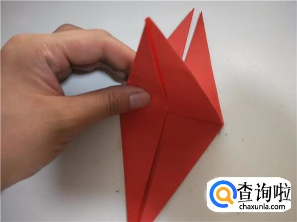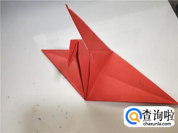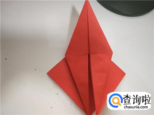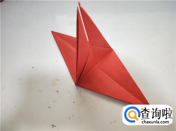 之后我们将上面的一个三角,折出千纸鹤的头部,如图所示。