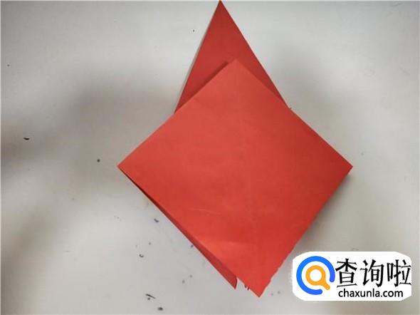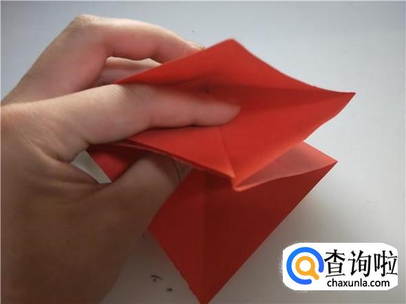 之后我们将折纸翻面,将这边里面也撑开,两边向内部中线对折,如图所示。