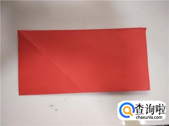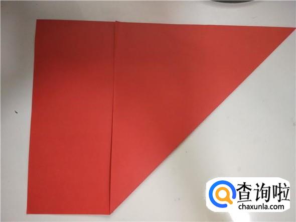 首先我们需要准备一张纸,我们将纸的长边和短边对折一下,折出一个三角形,如图所示,