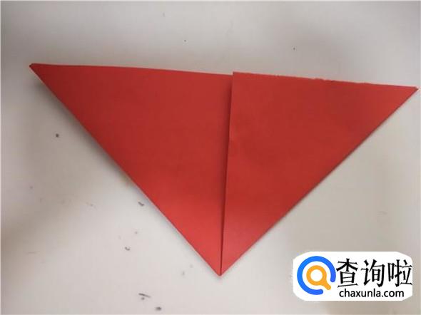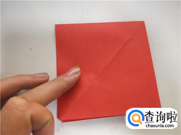 之后我们将折纸翻面,向下面的三角向上对折,如图所示。