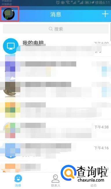 首先,我们打开我们的手机QQ,然后我们点击左上角的头像;