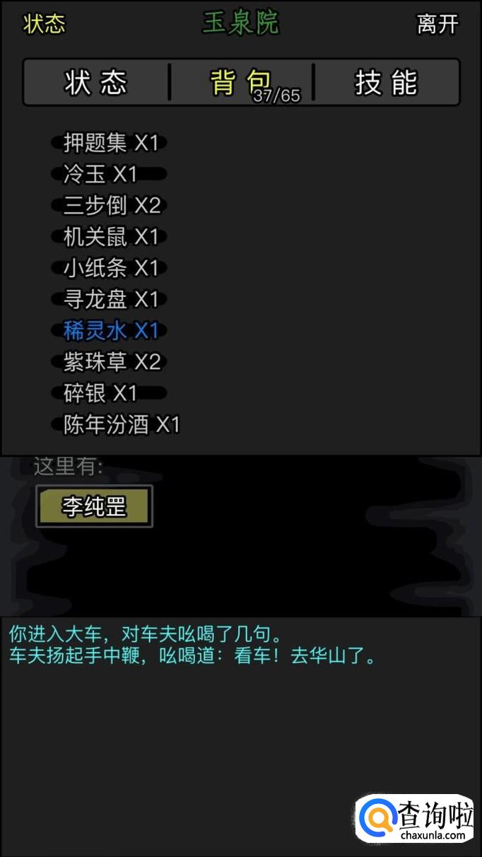 这一章的主线任务是给方敬渊送酒,我们就如副本之后,对话李纯罡,得到一瓶酒。