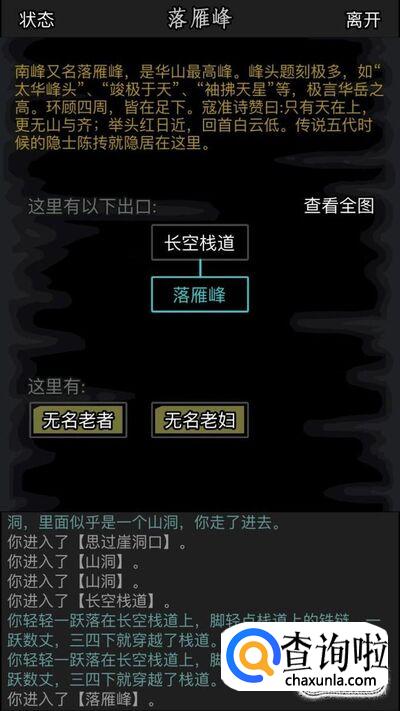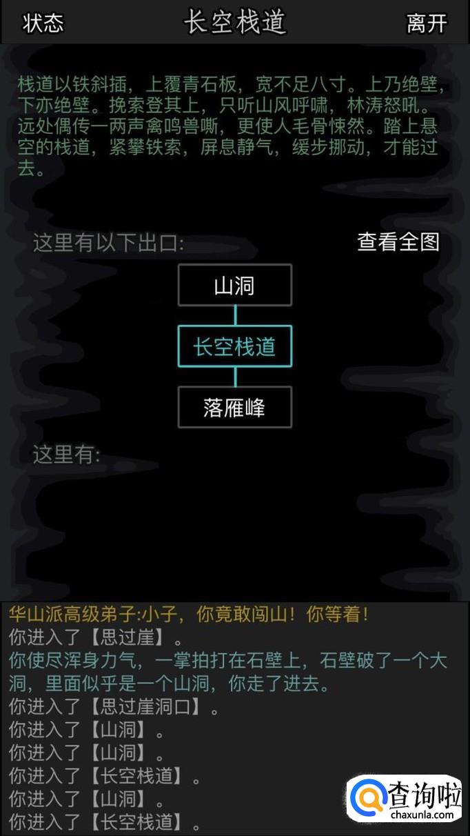 继续往前走,这时候我们会经过长空栈道,要过这个栈道需要基础轻功280,所以大家一定要看看自己是否达到,否则是过不去的。