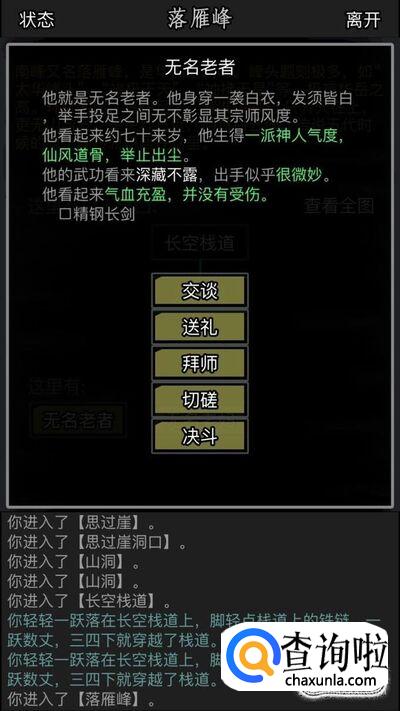最后一步成功拜师,就是要回到主页面上,进去师门,然后找到无名老者拜师,这样他就可以教你剩下的武学了,也就是华山顶级武学——独孤九剑。