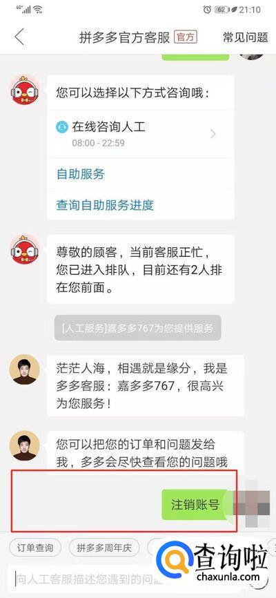 接入人工客服后,告诉客服需要注销的账号。客服便会查看账号是否可以注销,并为其操作注销。