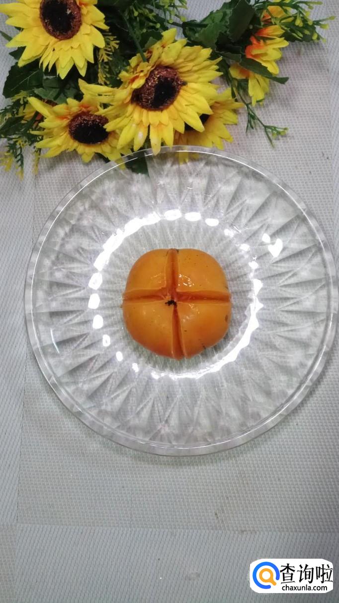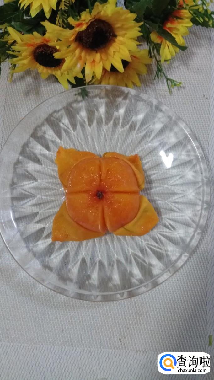 准备适量柿子,洗净后,用刀切十字花刀备用。