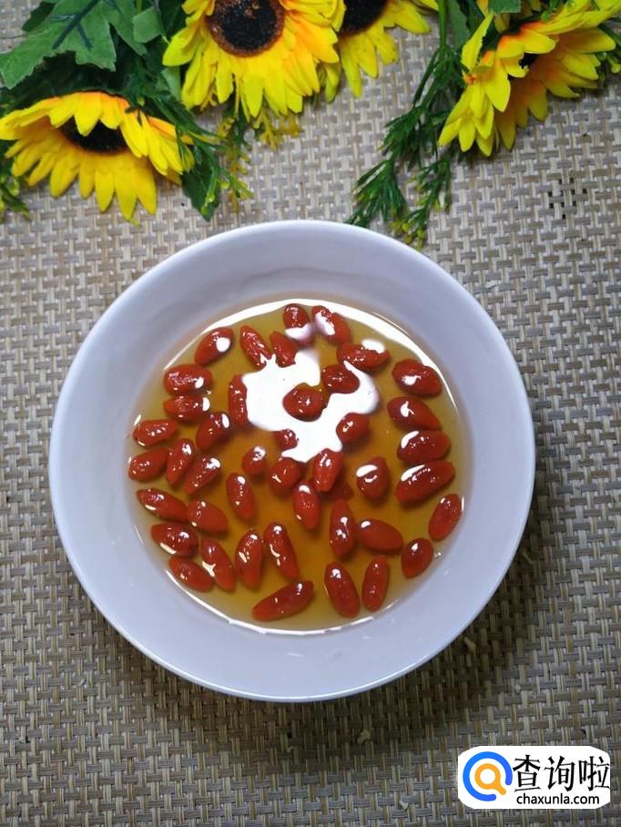 准备适量枸杞子,提前用清水泡开,将枸杞子倒入锅中。