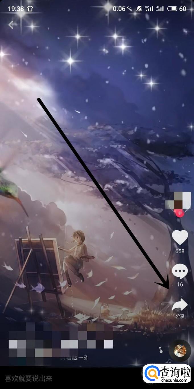 在抖音找到自己想要做壁纸的视频,点击“分享”,如图所示。