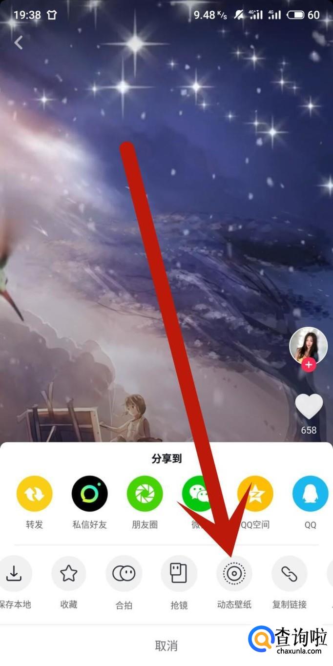 抖音视频做壁纸需要找到想要做壁纸的视频,点击“分享”,选择“动态壁纸”,然后安装抖音插件,之后再点击“动态壁纸”,最后点击“应用”即可。
