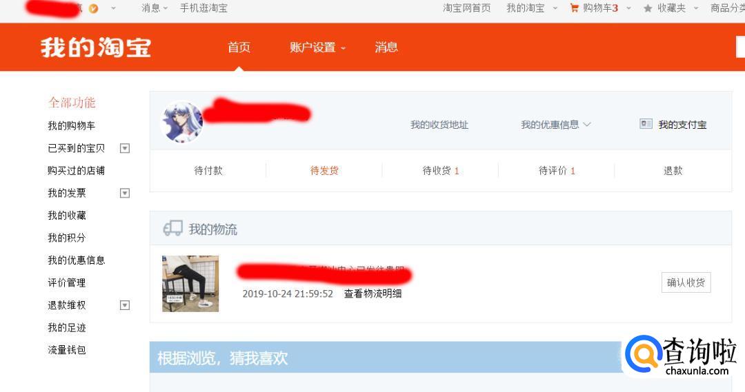 在电脑上登录淘宝,点击头像,进入“我的淘宝”首页。