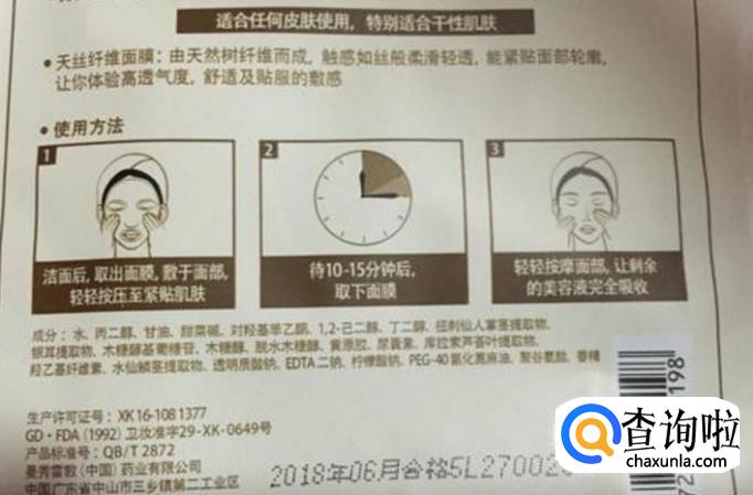 面膜的成分、使用方法等标识不明确