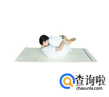 婴儿卷曲式 先平躺在垫子上,然后双腿用力提起,同时让自己的额头与膝关节处贴上,可以用双手抱住踝关节处。