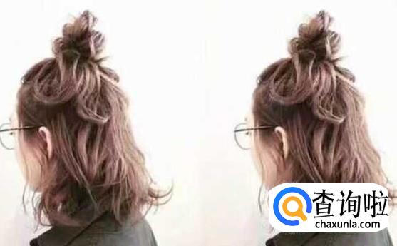 先撩起上面三分之一的头发,然后再从中间分成两部分,大致均匀分好即可,不必用梳子,用手能更好的制造出蓬松感,然后再盘好,用头绳固定好即可。