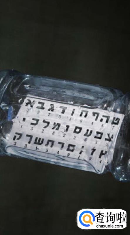 第一个盒子:我们找到水面上漂浮的一个矿泉水瓶子,点击后发现里面是一张符号和数字的对应表。