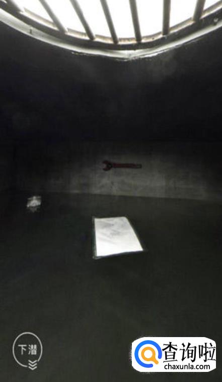 第四个盒子:待水位上升后,可以发现一个 红色小开关。点击关闭开关后,灯光关闭。这时候我们点击有黄圈的那面墙(这是1个时钟),发现时钟对应时刻显示出了一些图案,潜艇、蛋糕、纸条和车牌,每个图案代表了1个数字,把这些数字按 正确顺序组合 就是过关密码,所以问题来了,顺序是什么?这个要点击水面的一份合同,合同上面有5个数字;PS:蛋糕代表4 ,车牌代表4,纸条代表2,积木图案代表3,游艇代表7,每个人的图案顺序都不一样!合同数字是固定的,47725,所以假如4点钟方向是游艇,7点钟方向是车牌有蛋糕、2点钟是水瓶,5点钟是纸条,把这5个物品代表的数字按顺序 组合 起来,就是密码!我的密码是:74432,每个人的物品顺序都不一样,这个就看你们了!接下来,如下图,我们找到并点击悬挂的 扳手 然后点击下潜。