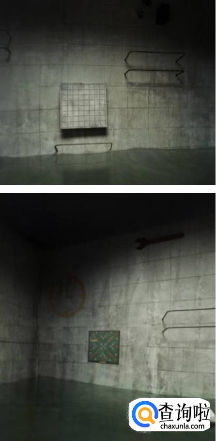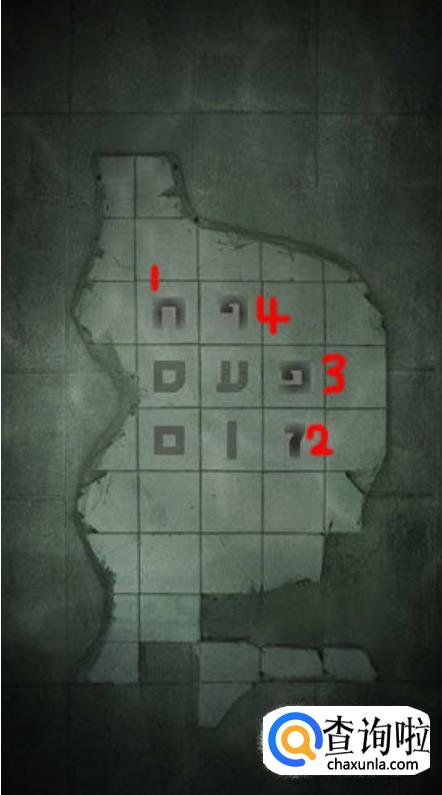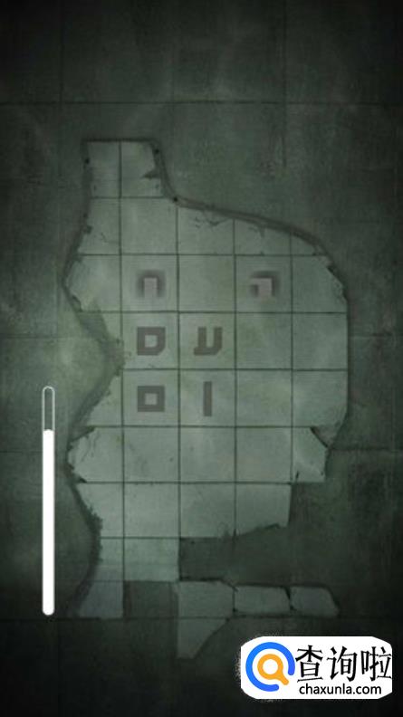 探照灯打开后,我们滑动屏幕,视角移动到左侧墙壁。可以看到如下符号。