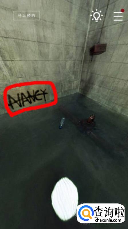 进入游戏,剧情过后,主角马上面临危险,在墙上找到nancy字样。