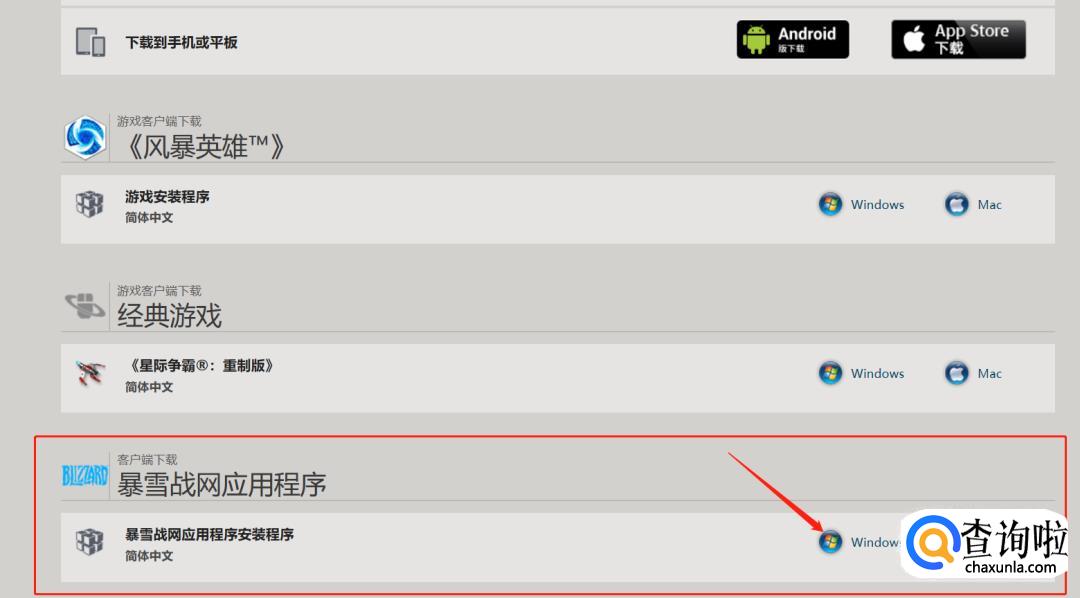 点击箭头所指的图标,进入客户端安装页面,往下滑动到最下面,点击箭头所示按钮下载战网登录器客户端,然后按照顺序安装即可,安装完后重新打开登录就即可:
