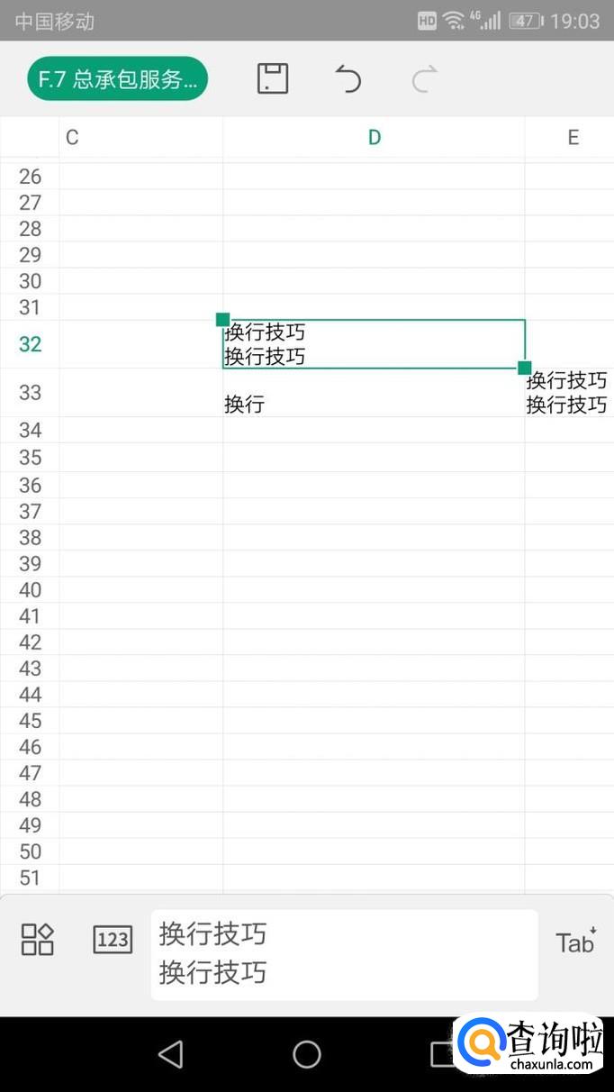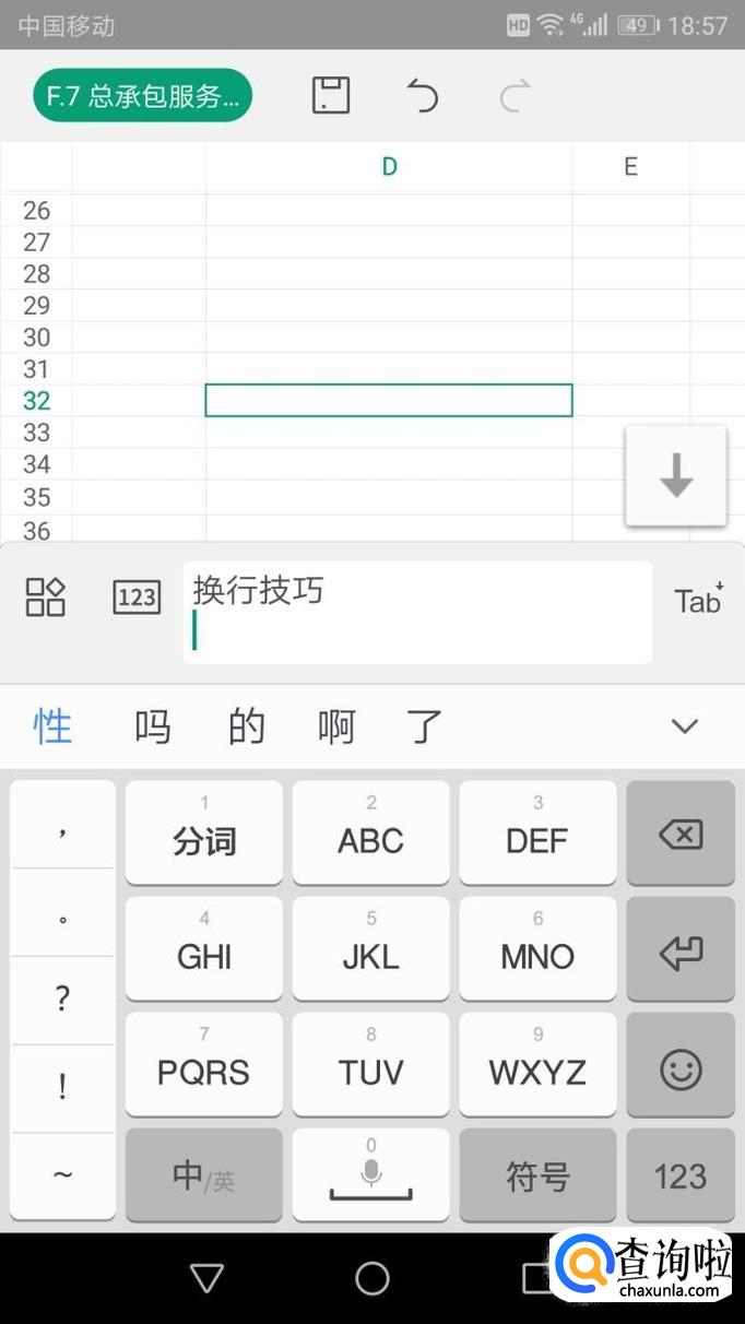 手动换行,点击要输入内容的表格框输入文字,换行就点击旁边的“tab”长按,出现了向下的箭头后就进入换行,输入文字后确定就可以看到效果。
