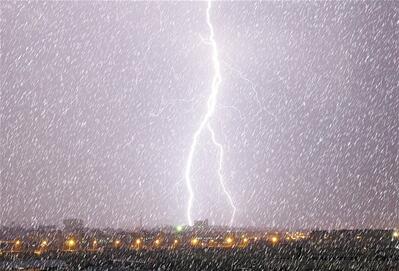 这种现象虽然少见,但也是正常的。冷暖空气交汇比较激烈,暖湿气流快速抬升形成垂直对流,就会形成对流云团,从而出现“雷打雪”。这种现象之所以很少见,主要是冬季空气低层和地面温度很低,不会像夏天那样产生较强的对流,因此,产生雷电的机会也不多。