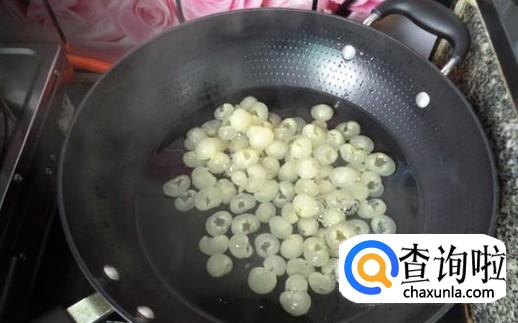 在锅里面加入清水将其烧开,给剥好的龙眼过一下开水,如图所示。