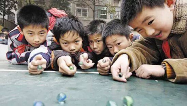 除了有年味特色的游戏,小伙伴们好不容易可以不写作业,只顾着玩了。玻璃弹珠成了首选,在地上画个圈,每人先在圈里放几个押着,看谁撞出来的多。有的在地上挖个坑,看谁先打到坑里。