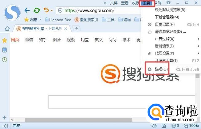 首先,我们打开我们电脑上面的浏览器,然后我们点击工具,弹出的界面,我们点击选项;
