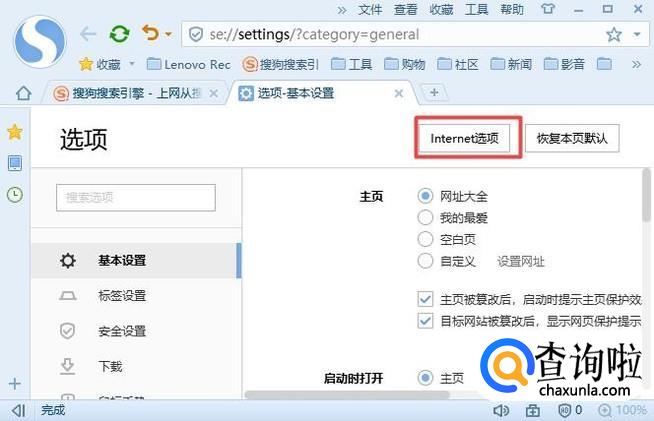 弹出的界面,我们点击Internet选项;