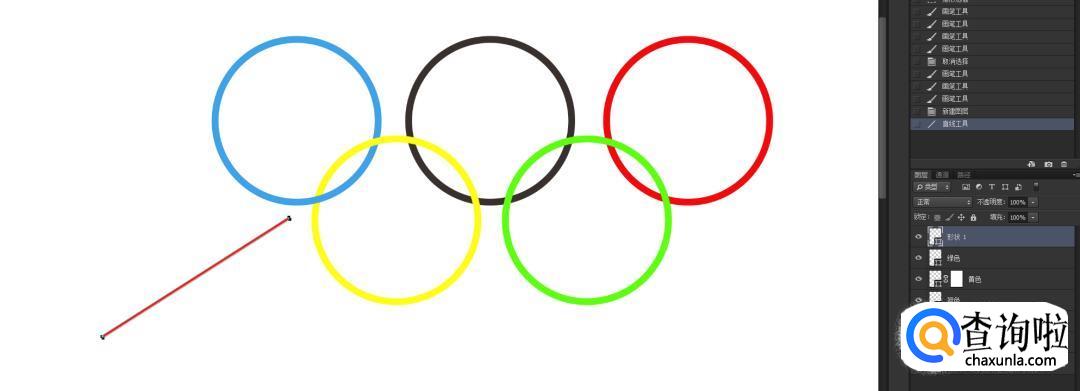 运五环是奥林匹克的标志,象征了五大洲的团结互助相亲相爱的美好意境。怎样利用Photoshop做五环。