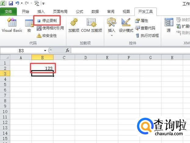 然后我们就可以在表格中开始录制宏的内容了,此处我们随意录入数字,然后按回车键,之后我们点击停止录制,这样我们就录制好一个宏了,还是比较简单的,相信大家现在都会录制宏了。