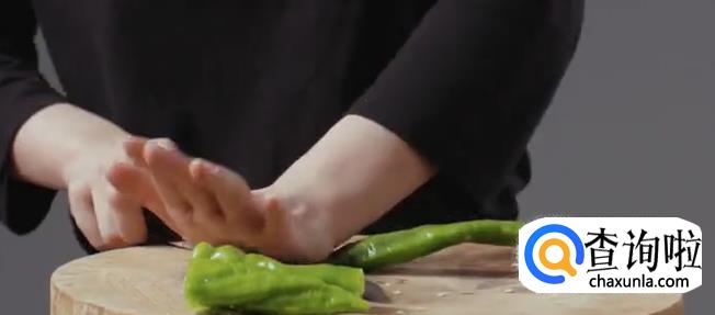 选择螺丝辣椒,将辣椒洗净去蒂,不能吃辣的要把籽去除干净,用刀背把辣椒压扁。