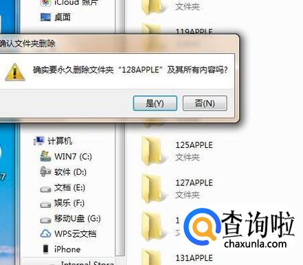 接着右击我们想要删除的苹果文件夹并点击删除,如下图所示。