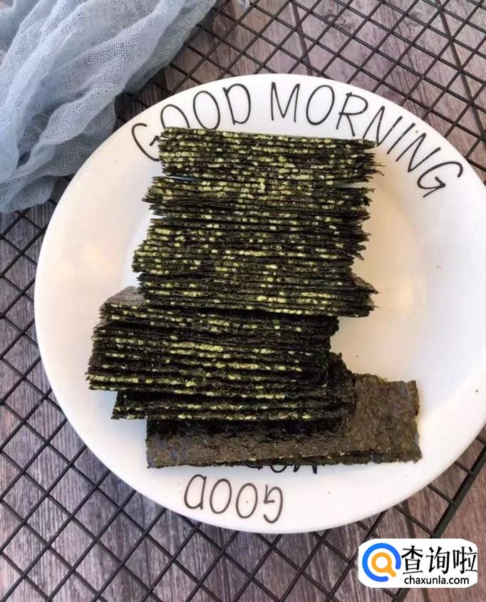 接着把擀好的海苔放到烤箱100°火烤25分钟就可以了。小贴士:大家可以试着掰一下海苔,如果比较硬,那么说明我们的海苔烤好了;如果比较软,那么请继续烤五分钟左右就差不多了。