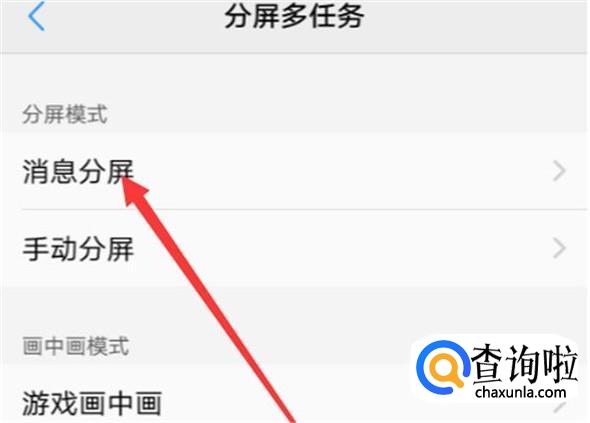 接着出现了消息分屏和手动分屏,我们点击消息分屏,如图所示。