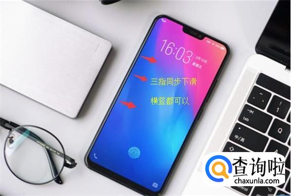 三个手指按住,下滑,打开分屏功能。