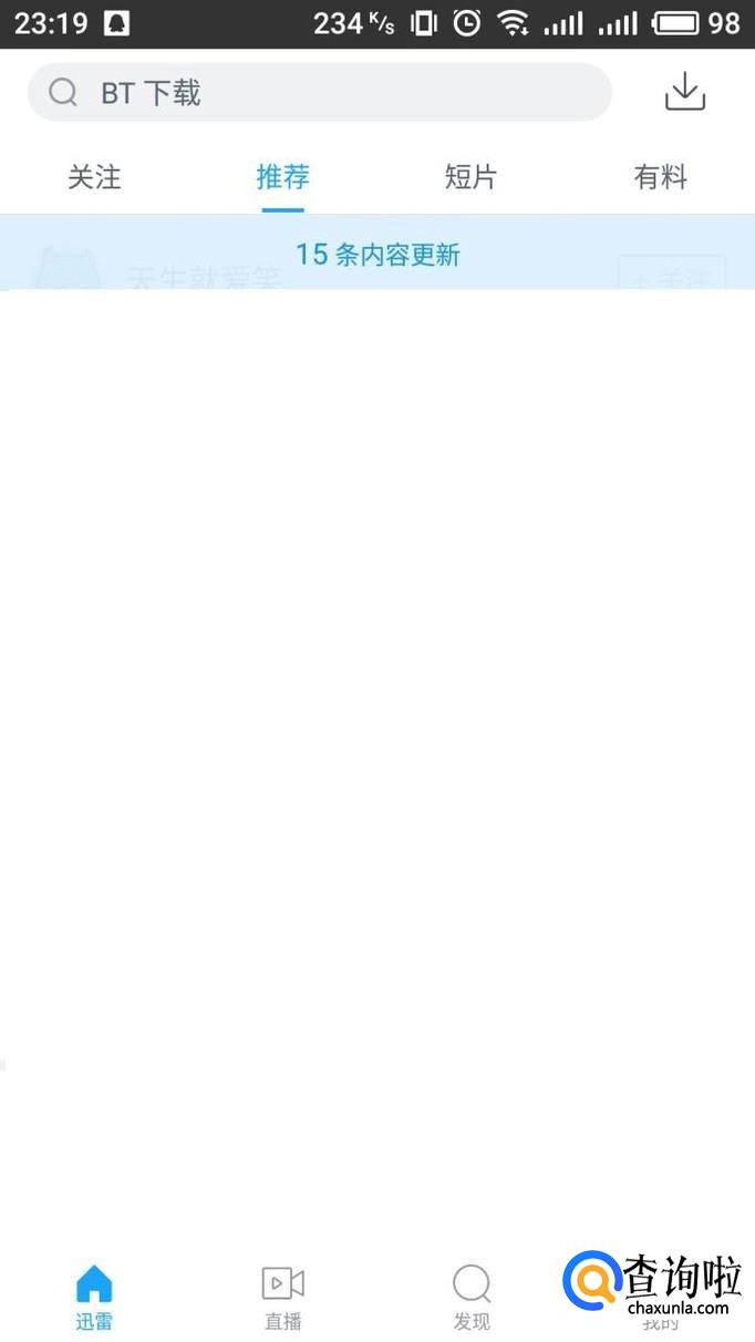 进入手机迅雷APP界面,点击右上角“下载”