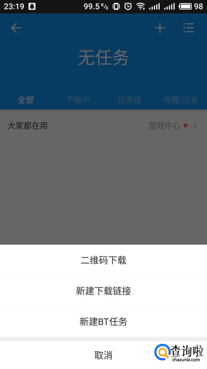进入下载任务列表界面,点击右上角“+”
