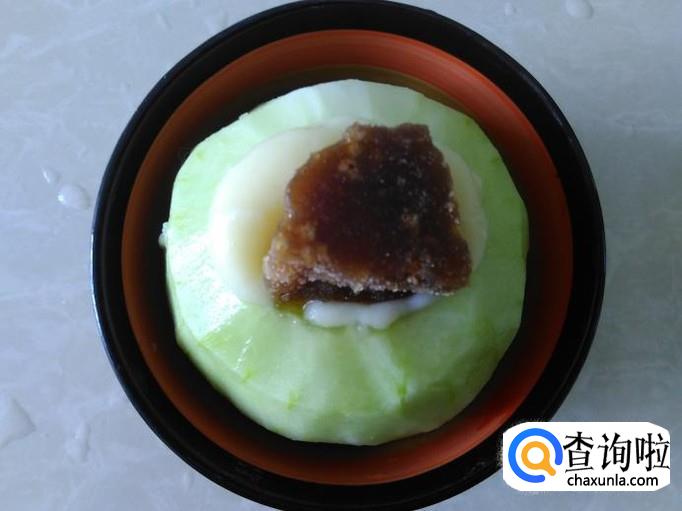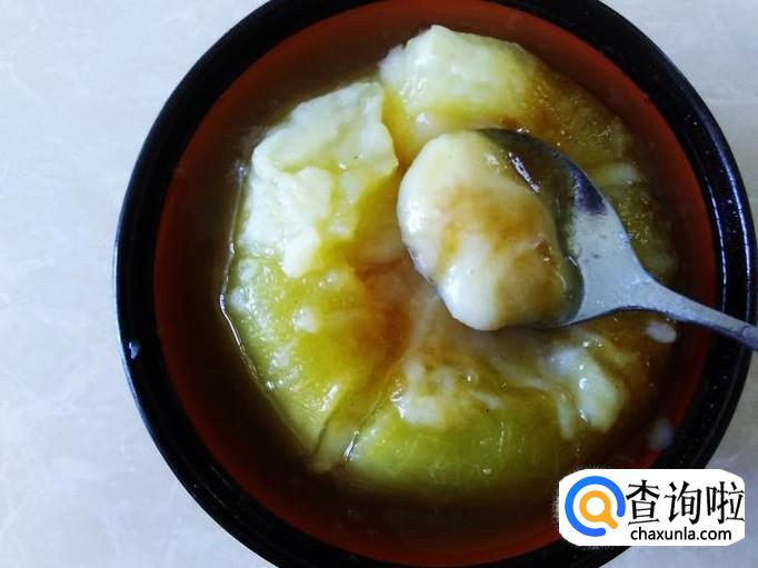 把炖好的香瓜拿出来,用勺子把香瓜切成几块,然后晾凉后放置冰箱保鲜层。【炖出来的成品已经是入口即化的了】