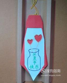 然后把折纸领带放在简易包装盒里。这就是给父亲的礼物。如果想得到更好看的作品就可以加一根短绳子。