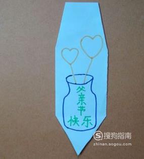 把写好祝福的彩纸,用剪刀剪出两个心形,粘贴在折纸领带上。这样折纸领带看起来生动形象,色彩也更加丰富。