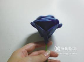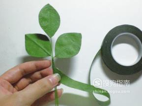 最后,将做好的叶子和花朵用绿色胶带纸绑在一起,一朵漂亮的玫瑰花就做成了。