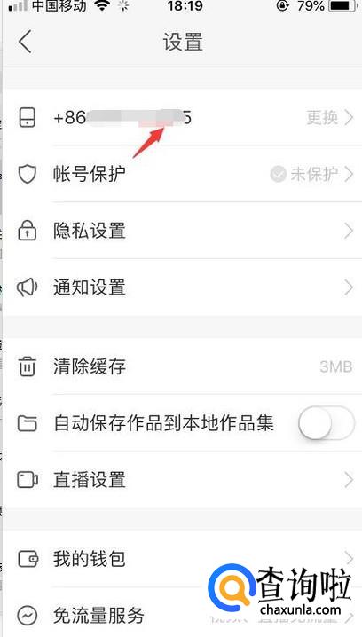 在设置功能的第一个就是绑定的手机号码,点击进去。