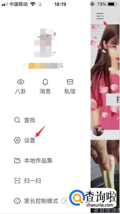 首先我们登录快手后点击左上角的三横图标进入到设置的功能。