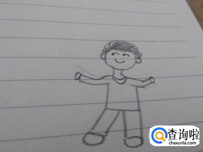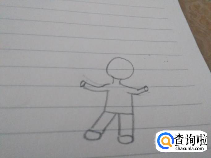 首先画出一个可爱的孩子的身形出来,头、身子和四肢,非常的简单。