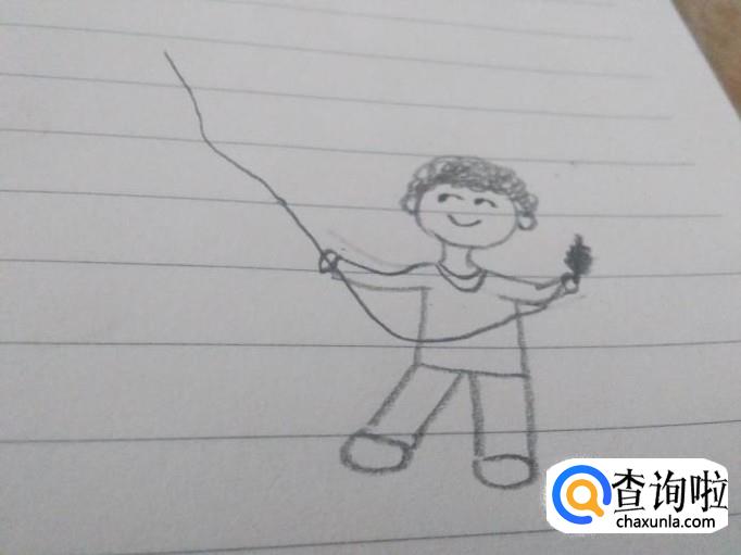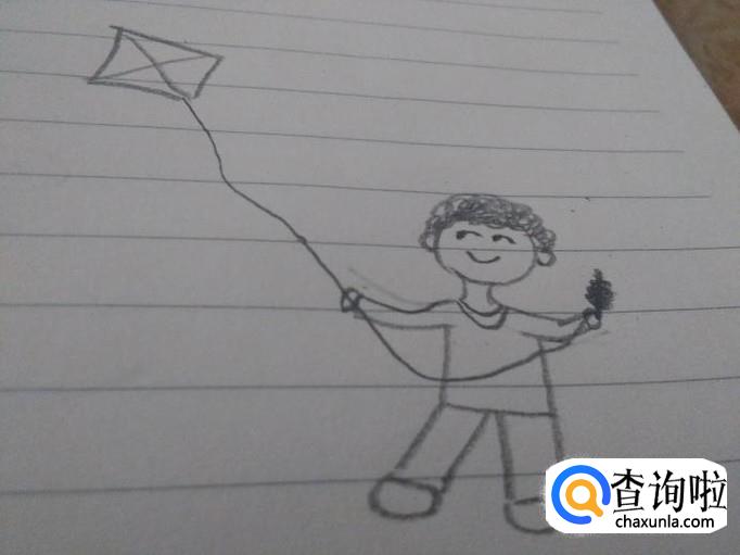 在线的顶端画一个菱形的风筝飞在天上,放风筝的简笔画就画好啦。