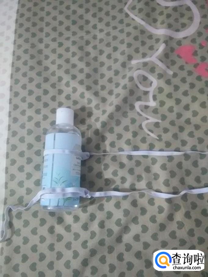 再把松紧带的一端从第二个瓶子的下方打一个结。