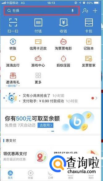 打开支付宝,在红圈处搜索“羊城通”应用。