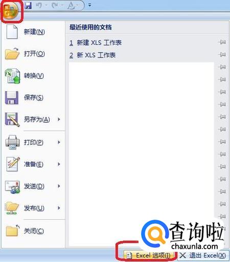 此时,我们点击左上角“office按钮”,然后点击“excel选项”。