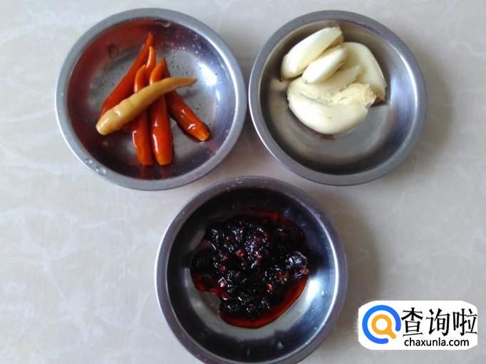 小米辣、蒜米、老干妈酱准备好。