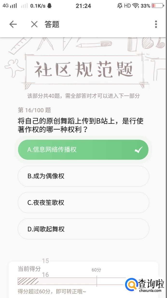 将自己的原创舞蹈上传到B 站上,是行使著作权的哪一种权利?